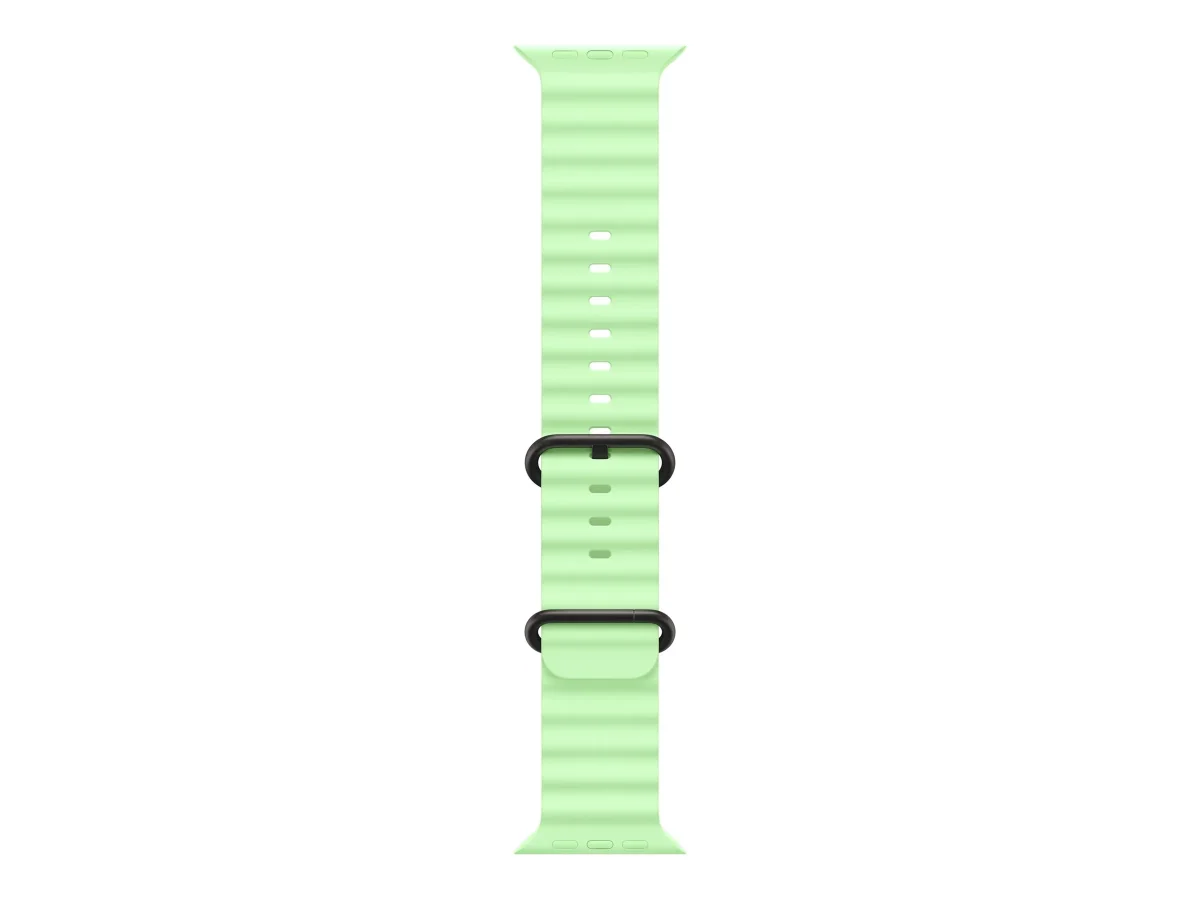 Das Apple Ocean Band wurde für Smartwatches entwickelt und bietet eine bequeme und verstellbare Passform für Handgelenke mit einem Umfang zwischen 130 mm und 200 mm. Es besteht aus strapazierfähigem Titan und Fluorelastomer und ist somit ein langlebiges Accessoire, das korrosionsbeständig ist. Der Schnallenverschluss ermöglicht eine einfache Anpassung und eignet sich daher für verschiedene Gehäusegrößen, darunter 44 mm, 45 mm, 46 mm und 49 mm. Mit seiner eleganten schwarzen Titanoberfläche verbessert dieses Armband die Funktionalität und verleiht jeder Uhr einen stilvollen Touch.