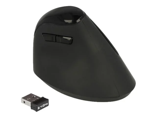 Delock Ergonomic - Vertikale Maus - ergonomisch - Für Rechtshänder - optisch - 6 Tasten - kabellos - 2.4 GHz - kabelloser Empfänger (USB) - Schwarz - retail