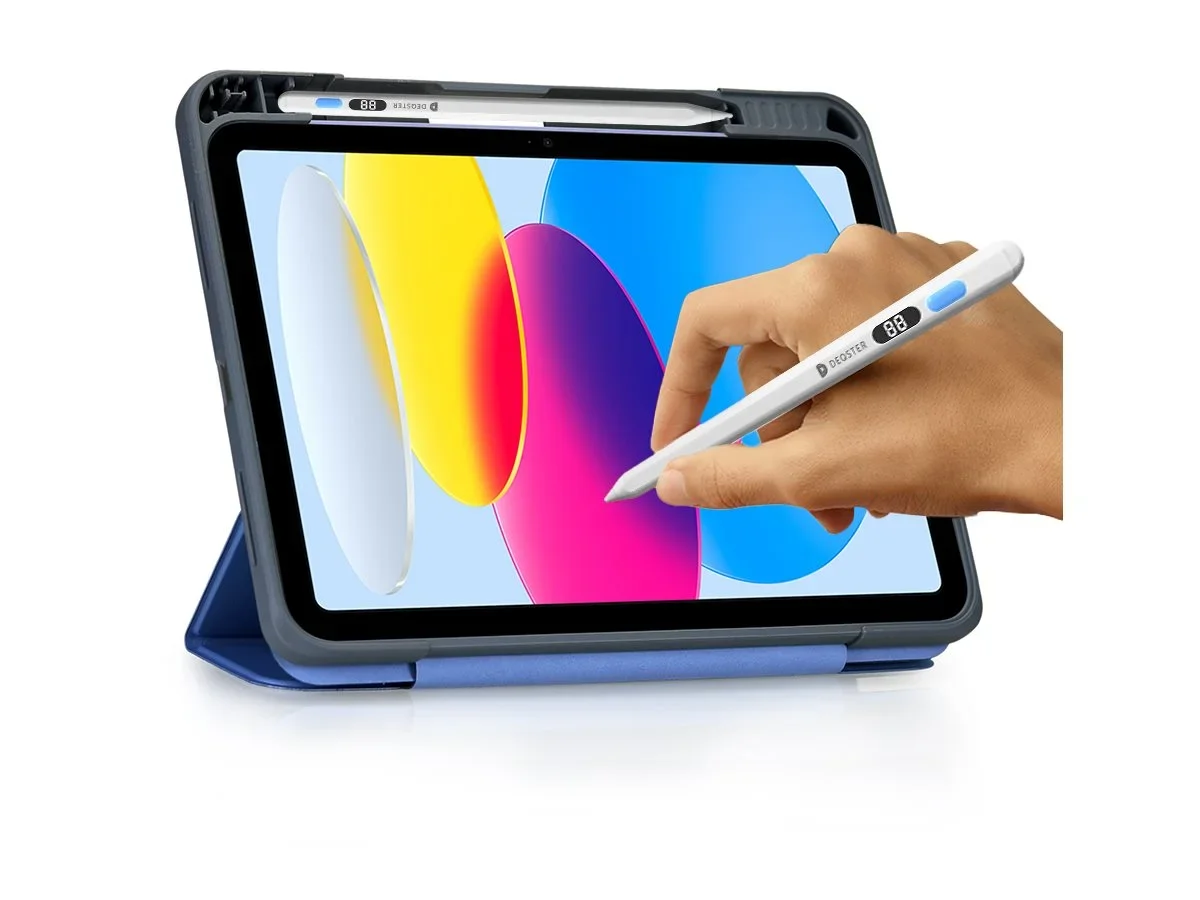 Die Deqster MAX Schutzhülle wurde für Tablets entwickelt und vereint Langlebigkeit und Funktionalität. Diese robuste Hülle besteht aus einer Mischung aus Polyurethan, Polycarbonat und thermoplastischem Polyurethan (TPU) und schützt vor Stürzen, Kratzern und Stößen. Sie verfügt über eine Klapphülle mit magnetischem Verschluss, die einen sicheren Schutz bietet und gleichzeitig einen einfachen Zugang zu Anschlüssen und Tasten ermöglicht. Das dreifach faltbare Design ermöglicht mehrere Betrachtungswinkel und verbessert so die Benutzerfreundlichkeit für Arbeit und Freizeit. Die transparente Rückseite sorgt dafür, dass das Design des Tablets sichtbar bleibt, während die Sleep/Wake-Funktion den Komfort im täglichen Gebrauch erhöht. Mit Fächern für den Apple Pencil und Stiftspitzen unterstützt diese Hülle Kreativität und Produktivität.