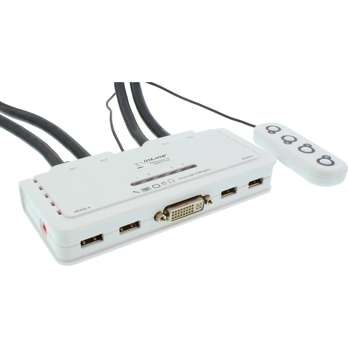 InLine® KVM Switch, 4-fach, DVI-D, USB, mit Audio, integr. Kabel