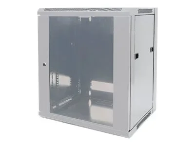 Intellinet Network Cabinet, Wall Mount (Standard), 12U, Usable Depth 410mm/Width 510mm, Grey, Flatpack, Max 60kg, Metal & Glass Door, Back Panel, Removeable Sides, Suitable also for use on desk or floor, 19",Parts for wall install (eg screws/rawl plugs) not included - Gehäuse - geeignet für Wandmontage - Grau, RAL 7035 - 12U - 48.3 cm (19")