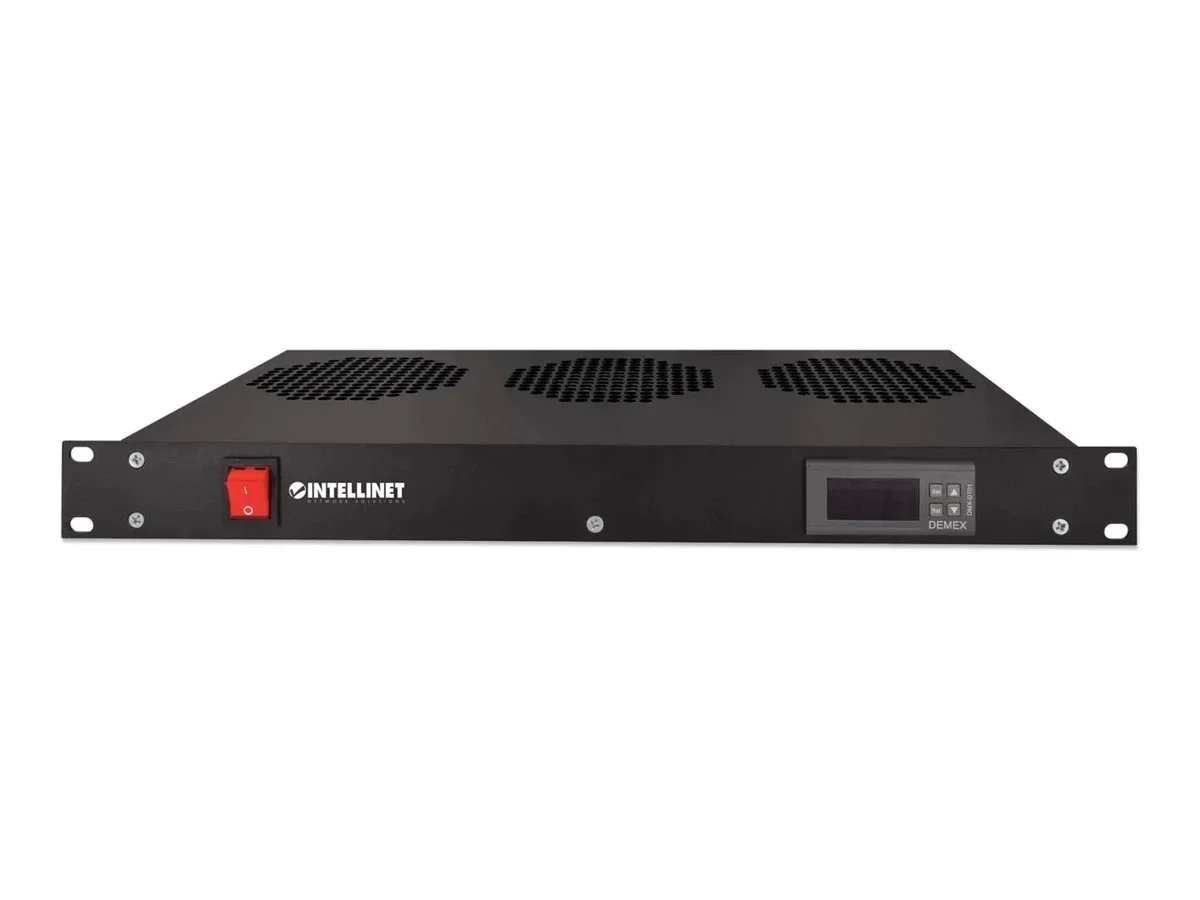 Intellinet Kühleinheit mit 3 Lüftern für 19" Schränke, Zur Montage auf den Profilschienen, 1 HE, schwarz - Rack-Lüftereinsatz - mit 3 Ventilatoren - Wechselstrom 220/240 V - Schwarz, RAL 9005 - 1U - 48.3 cm (19")