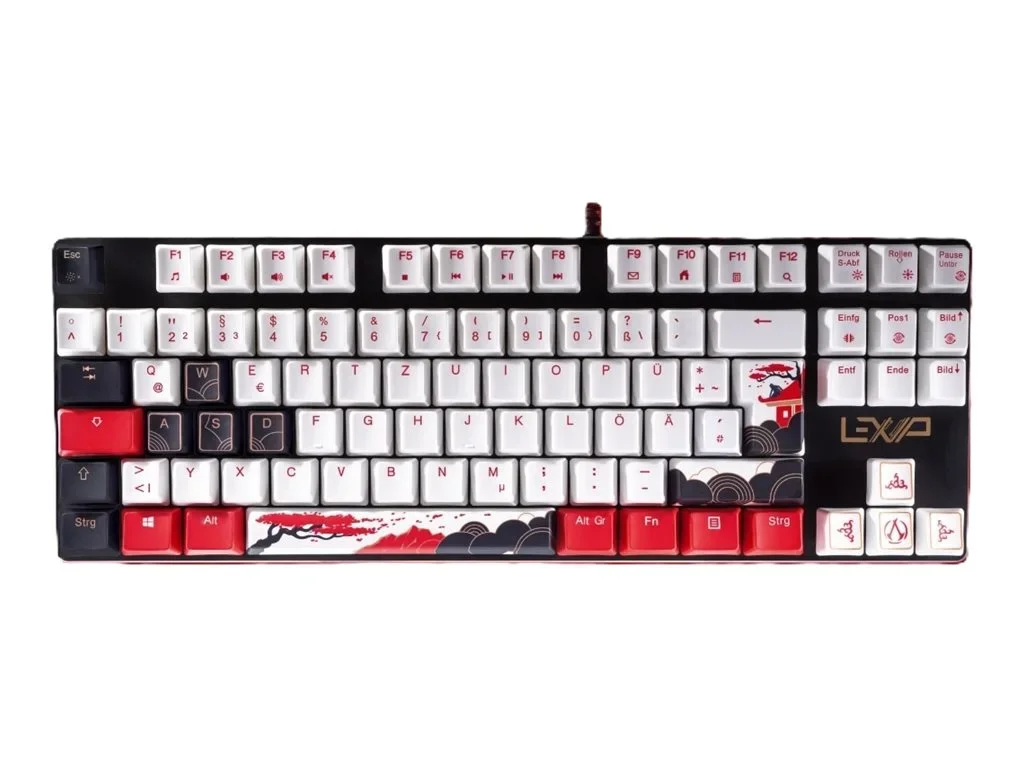 Lexip - Master Bundle - Tastatur - Hintergrundbeleuchtung - USB - QWERTZ - Deutsch - Tastenschalter: roter Schalter - weiß, Schwarz, Gold, Rot - mit Assassin's Creed Shadows, mouse and mousepad