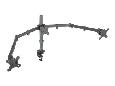 Manhattan TV & Monitor Mount, Desk, Double-Link Arms, 3 screens, Screen Sizes: 10-27", Black, Clamp Assembly, Triple Screen, VESA 75x75 to 100x100mm, Max 7kg (each), Lifetime Warranty - Befestigungskit (C-Klammer, Schrauben, doppelstrebiger Schwenkarm, Rändelschrauben, Mittelmontage) - für 3 LCD-Anzeigen - Bildschirmgröße: 33-68.6 cm (13"-27") - Schreibtisch