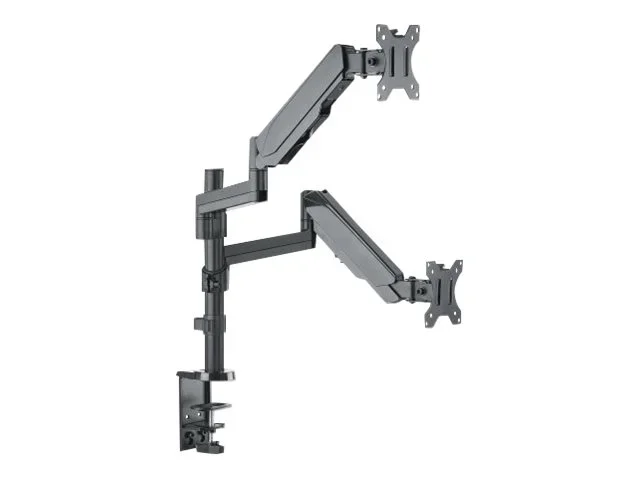 Manhattan TV & Monitor Mount, Desk, Full Motion (Gas Spring), 2 screens, Screen Sizes: 10-27", Black, Clamp or Grommet Assembly, Dual Screen, VESA 75x75 to 100x100mm, Max 8kg (each), Lifetime Warranty - Befestigungskit (Spannbefestigung für Tisch, Dual-Schwenkarm, Klammerbasis, 2 Gasfedern) - für 2 LCD-Displays - Kunststoff, Aluminium, Stahl - Bildschirmgröße: 43.2-81.3 cm (17"-32") - Tischmontage
