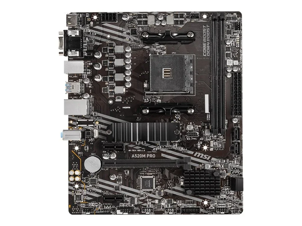MSI A520M PRO - Motherboard - micro ATX - Socket AM4 - AMD A520 Chipsatz - USB 3.2 Gen 1 - Gigabit LAN - Onboard-Grafik (CPU erforderlich) - HD Audio (8-Kanal)