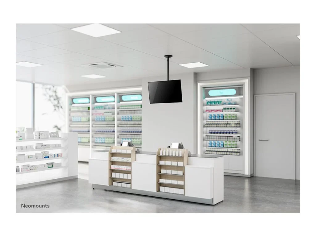 Das Neomounts Modell FPMA-C050 ist eine dreh- und schwenkbare Deckenhalterung für Flachbildschirme und Flachbild-Fernseher bis 30" (76 cm). Diese Halterung ist eine gute Wahl für eine platzsparende Aufhängung, oder wenn Wandmontage oder Boden-Platzierung ist keine Option ist.