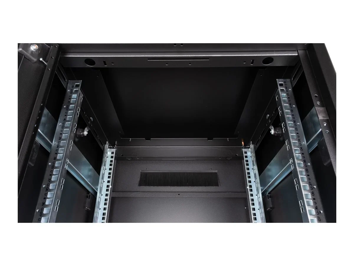 ROLINE 19 Zoll Netzwerkschrank Pro 42 HE 600x600 BxT Glastür schwarzDie Netzwerkschränke der ROLINE Pro Serie wurden entwickelt, um eine besonders komfortable und flexible Netzwerkverkabelung zu ermöglichen. Mit Bürsteneinlässen im Dach- und Bodenbereich (ab 26HE und 800 mm Schrankbreite), einem aufschiebbaren Einlass im Bodenchassis mit Moosgummidichtung sowie Bürstenleisten ober- und unterhalb der Rücktür (ab 26HE) bieten sie vielseitige Einsatzmöglichkeiten für verschiedene Anwendungsszenarien. Vertikale Kabelführungskanäle mit Blende, installiert neben den Profilschienen (ab 800 mm Schrankbreite), vervollständigen das Design. Ein abgesetzter, abnehmbarer Deckel mit Lüftungsschlitzen verbessert die Luftzirkulation und ermöglicht eine einfache Installation eines Lüftermoduls. Die Lüftereinheit kann von oben ein- und ausgebaut werden, ohne dass die Komponenten im Inneren betroffen sind. Im Inneren sind zwei Paar galvanisierte 19"-Profilschienen verbaut, die in beide Richtungen ablesbar und in der Tiefe verstellbar sind. Sie sind zudem mit zusätzlichen Tiefenstreben im Schrank verbunden. Jeder Schrank besteht aus einer robusten Stahlkonstruktion mit einer Materialstärke von bis zu 1,5 mm Stahlblech.Die Farbgebung erfolgt mittels elektrostatischer Pulverbeschichtung in den Standardfarben Grau (RAL 7035) und Schwarz (RAL 9005). Modular abnehmbare Seitenwände und Türen verbessern die Zugänglichkeit. Ein Wechsel des Türanschlags ist möglich. Die Schränke sind bei Bedarf auch vollständig zerlegbar.