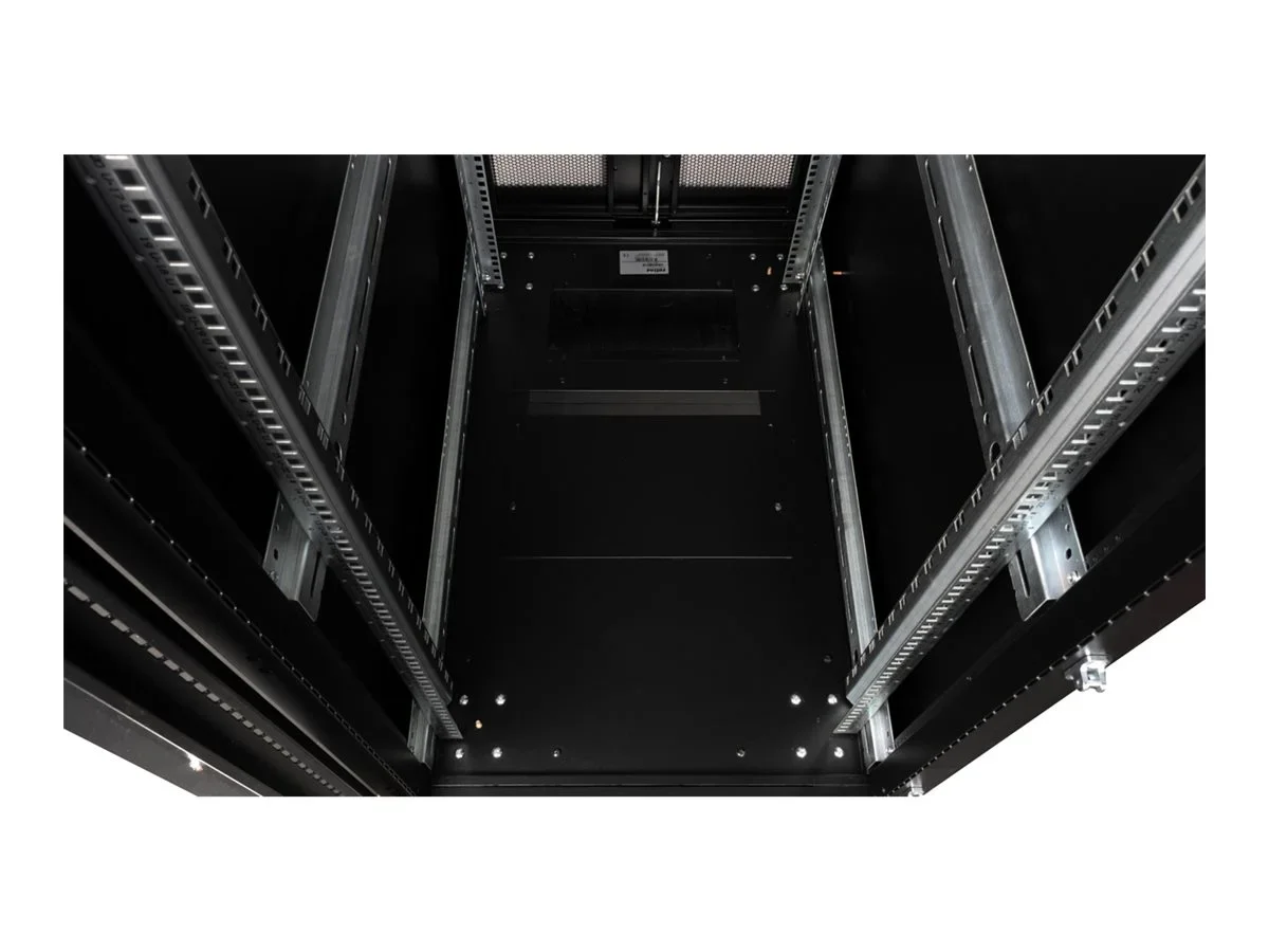 ROLINE 19 Zoll Serverschrank Pro 36 HE 600x1000 BxT schwarz PlexiglasDie Serverschränke der ROLINE Pro Serie wurden speziell für eine komfortable und flexible Netzwerkverkabelung entwickelt. Seitlich im Dach und Boden (ab 800 mm Schrankbreite) befinden sich Einlässe mit Bürsten, ein aufschiebbarer Einlass mit Moosgummidichtung sowie ein zusätzlicher Bürsteneinlass im Bodenchassis, die vielseitige Einsatzmöglichkeiten bieten. Perforierte Einflügel-Fronttüren und doppelflügelige Rücktüren, jeweils mit Schwenkgriff und Profil-Halbzylinder, sorgen für eine verbesserte Luftzirkulation. Das Dach verfügt über eine perforierte Abdeckung, die eine einfache Installation eines Lüftermoduls ermöglicht.Im Inneren des Schranks sind zwei Paar galvanisierte 19"-Profilschienen montiert, die mit in beide Richtungen ablesbaren Höheneinheiten ausgestattet und in der Tiefe verstellbar sind. Zusätzlich sind sie mit Tiefenstreben verbunden. Jeder Schrank besteht aus einer robusten Stahlkonstruktion mit einer Materialstärke von bis zu 2,0 mm. Die Schränke sind elektrostatisch pulverbeschichtet und in den Standardfarben Grau (RAL 7035) und Schwarz (RAL 9005) erhältlich. Modular abschließ- und abnehmbare Seitenwände (ab 42HE horizontal geteilt) und Türen verbessern die Zugänglichkeit. Der Türanschlag kann ebenfalls gewechselt werden. Die komplette Konstruktion ist zerlegbar, weshalb die Schränke bei Bedarf vollständige demontierbar wären.