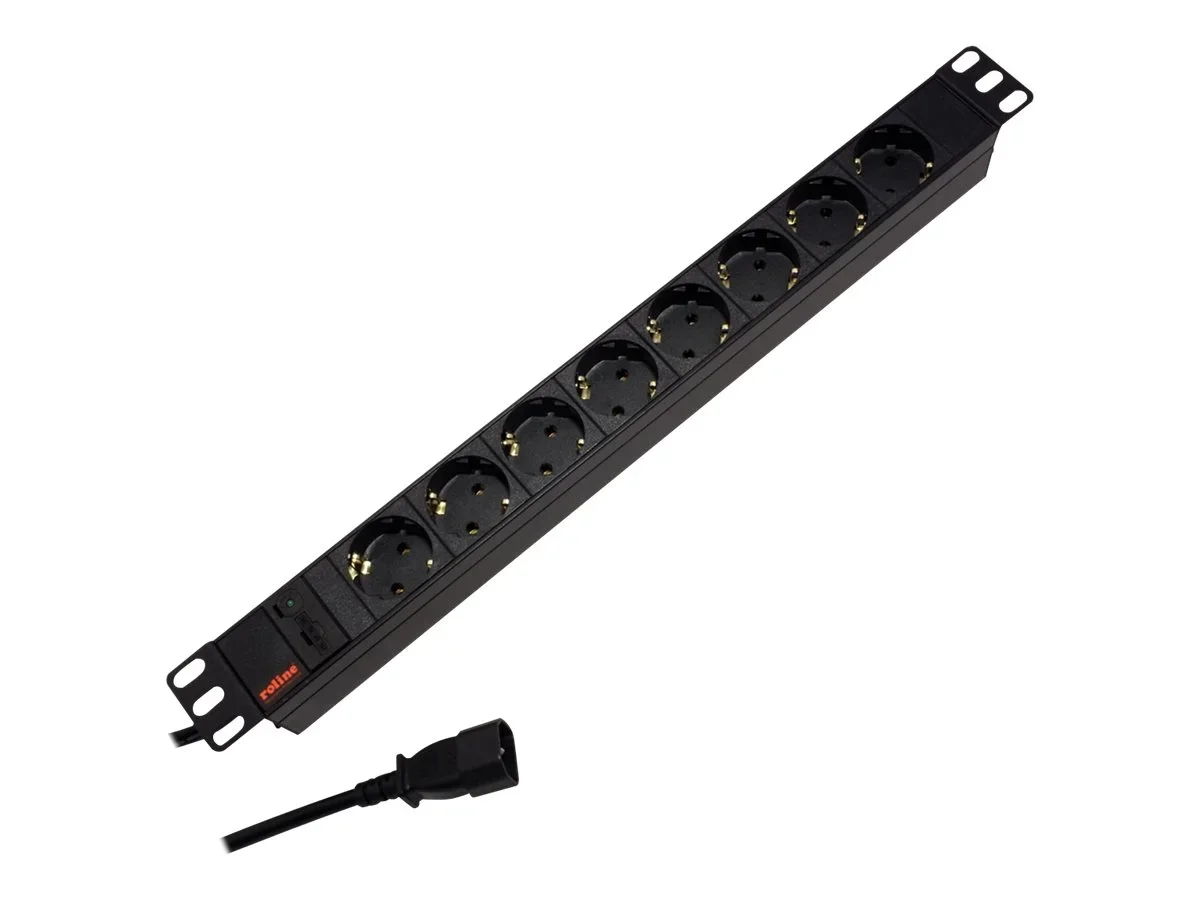 Roline - Steckdosenleiste (Rack - einbaufähig) - 250 V - 2300 Watt - Eingabe, Eingang IEC 60320 C14 - Ausgangsanschlüsse: 8 - 1U - 48.3 cm (19") - 2 m Schnur - Schwarz - für P/N: 26.21.0233, 26.21.0234, 26.21.0235, 26.21.0236, 26.21.0237, 26.21.0238, 26.21.0239