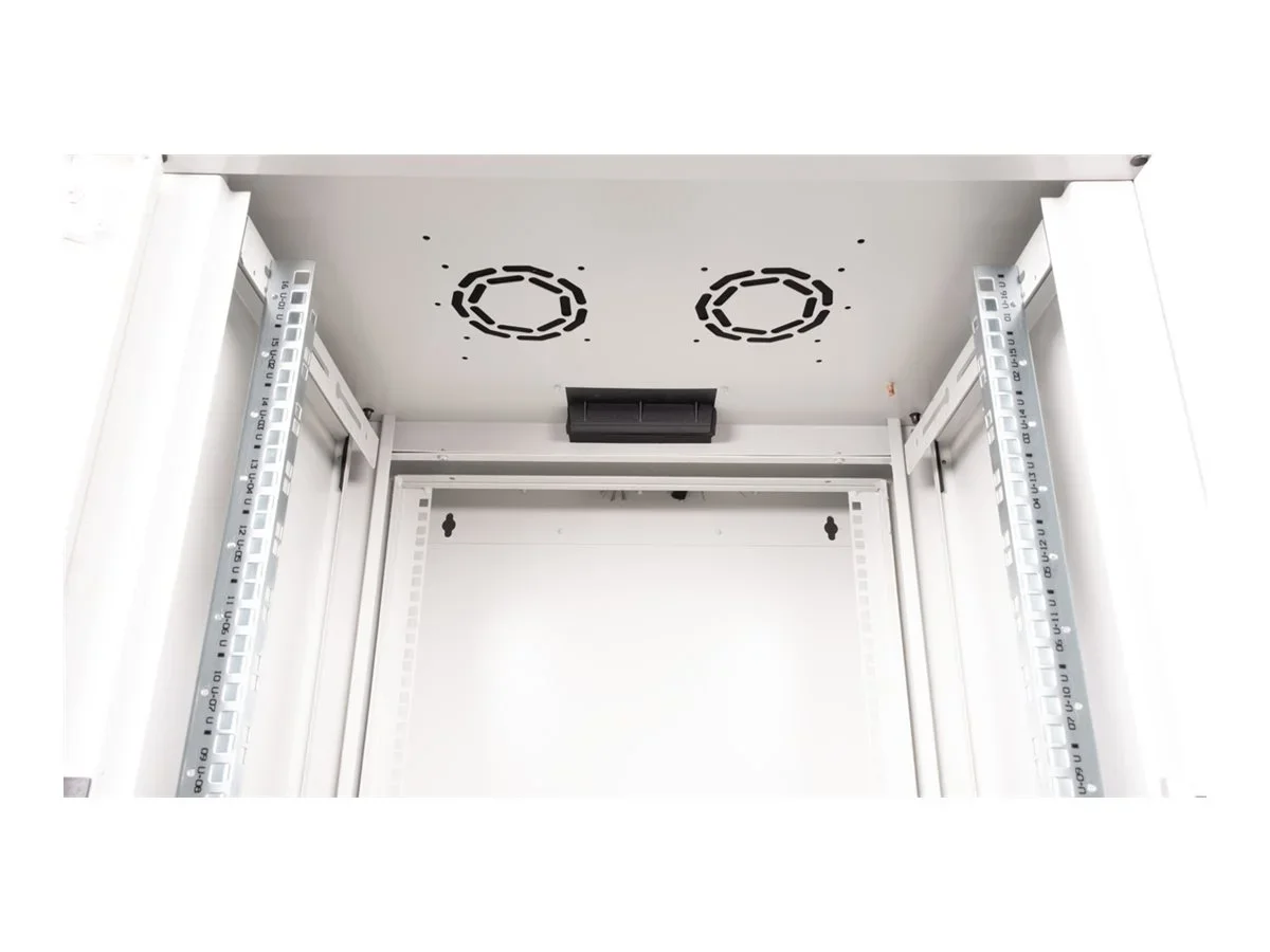 ROLINE 19 Zoll Wandgehäuse Pro 16 HE 600x600 BxT zweiteilig schwenkbar grauDie Wandgehäuse der ROLINE Pro Serie wurden speziell für eine flexible Netzwerkverkabelung konzipiert. Durch das integrierte Scharnier im rückseitigen Rahmen lässt sich das Gehäuse bei Bedarf zur Seite klappen. Jeder Schrank verfügt im Dach über einen verschiebbaren Kabeleinlass mit Moosgummidichtung. Rückwand und Boden sind mit ausgestanzten Kabeleinlässen und Kunststoffabdeckungen versehen. Der rückseitige Rahmen ist oben und unten mit Bürstenleisten ausgestattet. Zur Installation eines Lüftermoduls ist das Dachchassis bereits mit einem passenden Ausschnitt versehen. Im Inneren befinden sich galvanisierte 19"-Profilschienen, die in beide Richtungen ablesbar und in der Tiefe verstellbar sind. Der rückseitige Rahmen hat zusätzlich eine 19"-Lochung. Jeder Schrank besteht aus einer robusten Stahlkonstruktion aus bis zu 1,5 mm starkem Stahlblech und ist in den Standardfarben Grau (RAL 7035) und Schwarz (RAL 9005) elektrostatisch pulverbeschichtet. Modular abschließbare und abnehmbare Seitenwände sowie eine abschließbare und abnehmbare Fronttür verbessern die Zugänglichkeit. Der Türanschlag kann gewechselt werden. Die Wandmontage erfolgt in zwei einfachen Schritten: Der Rahmen des Gehäuses wird in der gewünschten Öffnungsrichtung an die Wand montiert und anschließend mit dem Gehäuse verbunden. Optional können die Wandgehäuse der ROLINE Pro Serie mit Nivellierfüßen oder Rollen auch freistehend genutzt werden. Fronttür aus gehärtetem Glas, abschließbar 1-Punkt-Verriegelung an der Fronttür Gehäuse ist mit rückseitigem Rahmen durch separates Schloss verbunden Kabelzuführung an Rückseite und Boden Seitenteile sind abschließ- und abnehmbar Dach mit Austanzung für Lüftermodule Lüftungsschlitze für passive Be- und Entlüftung Inkl. Befestigungsmaterial IP Schutzklasse: IP20.
