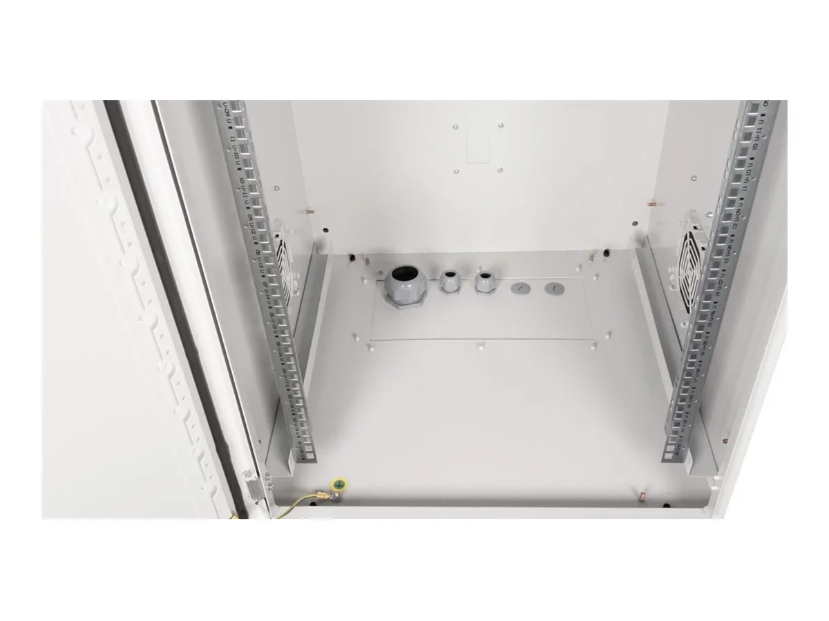 19 Zoll Wandgehäuse Pro 20 HE 600x600 BxT IP55 outdoor grauDie outdoor-Netzwerkschränke zur Wandmontage sind nach Schutzart IP55 entwickelt und speziell für den Einsatz in rauen Umgebungen, insbesondere im Außenbereich, ausgelegt. Die Wandgehäuse bieten ein 3-Punkt-Verriegelungssystem mit abschließbarem Schwenkgriff und isolierten PG-Kabelverschraubungen. Integrierte Lüftungsfiltergehäuse gewährleisten die Belüftung und bieten Schutz vor Wasser- und Staub gemäß IP54. Diese Schränke sind ideal für Außenbereiche, die Umwelteinflüssen wie Regen, Hagel, und Spritzwasser ausgesetzt sind. Das Dachchassis ist für die Installation eines Lüftermoduls mit einem gefilterten Bereich ausgestattet. Im Inneren befinden sich ein Paar galvanisierte 19"-Profilschienen, die in beide Richtungen ablesbar und in der Tiefe verstellbar sind. Jeder Schrank besteht aus einer robusten Stahlkonstruktion mit einer Materialstärke von bis zu 2,0 mm.Die Farbgebung erfolgt durch elektrostatische Pulverbeschichtung in der Standardfarbe Grau (RAL 7035). Die Wandmontage erfolgt mit den beigelegten Haltewinkeln. Optional können die Schränke mit einem Sockel als freistehende Lösung genutzt oder mithilfe eines Befestigungssets an Masten angebracht werden. Traglast: 100 kg Abschließbare Stahl-Fronttür mit Schwenkhebelgriff 3-Punkt-Verriegelung an der Fronttür Fronttür mit Erdung und zwei angeschweißten, stärkenden Balken Kabelzuführung im Boden Dach bietet mit einzubauenden Lüftermodulen Heißluftabfuhr aus dem Gehäuse, Austanzung für Lüftermodule Integrierte Lüftungsfiltergehäuse IP Schutzklasse: IP55.