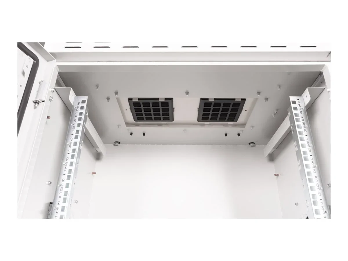 19 Zoll Wandgehäuse Pro 9 HE 600x450 BxT IP55 outdoor grauDie outdoor-Netzwerkschränke zur Wandmontage sind nach Schutzart IP55 entwickelt und speziell für den Einsatz in rauen Umgebungen, insbesondere im Außenbereich, ausgelegt. Die Wandgehäuse bieten ein 3-Punkt-Verriegelungssystem mit abschließbarem Schwenkgriff und isolierten PG-Kabelverschraubungen. Integrierte Lüftungsfiltergehäuse gewährleisten die Belüftung und bieten Schutz vor Wasser- und Staub gemäß IP54. Diese Schränke sind ideal für Außenbereiche, die Umwelteinflüssen wie Regen, Hagel, und Spritzwasser ausgesetzt sind. Das Dachchassis ist für die Installation eines Lüftermoduls mit einem gefilterten Bereich ausgestattet. Im Inneren befinden sich ein Paar galvanisierte 19"-Profilschienen, die in beide Richtungen ablesbar und in der Tiefe verstellbar sind. Jeder Schrank besteht aus einer robusten Stahlkonstruktion mit einer Materialstärke von bis zu 2,0 mm.Die Farbgebung erfolgt durch elektrostatische Pulverbeschichtung in der Standardfarbe Grau (RAL 7035). Die Wandmontage erfolgt mit den beigelegten Haltewinkeln. Optional können die Schränke mit einem Sockel als freistehende Lösung genutzt oder mithilfe eines Befestigungssets an Masten angebracht werden. Traglast: 100 kg Abschließbare Stahl-Fronttür mit Schwenkhebelgriff 3-Punkt-Verriegelung an der Fronttür Fronttür mit Erdung und zwei angeschweißten, stärkenden Balken Kabelzuführung im Boden Dach bietet mit einzubauenden Lüftermodulen Heißluftabfuhr aus dem Gehäuse, Austanzung für Lüftermodule Integrierte Lüftungsfiltergehäuse IP Schutzklasse: IP55.