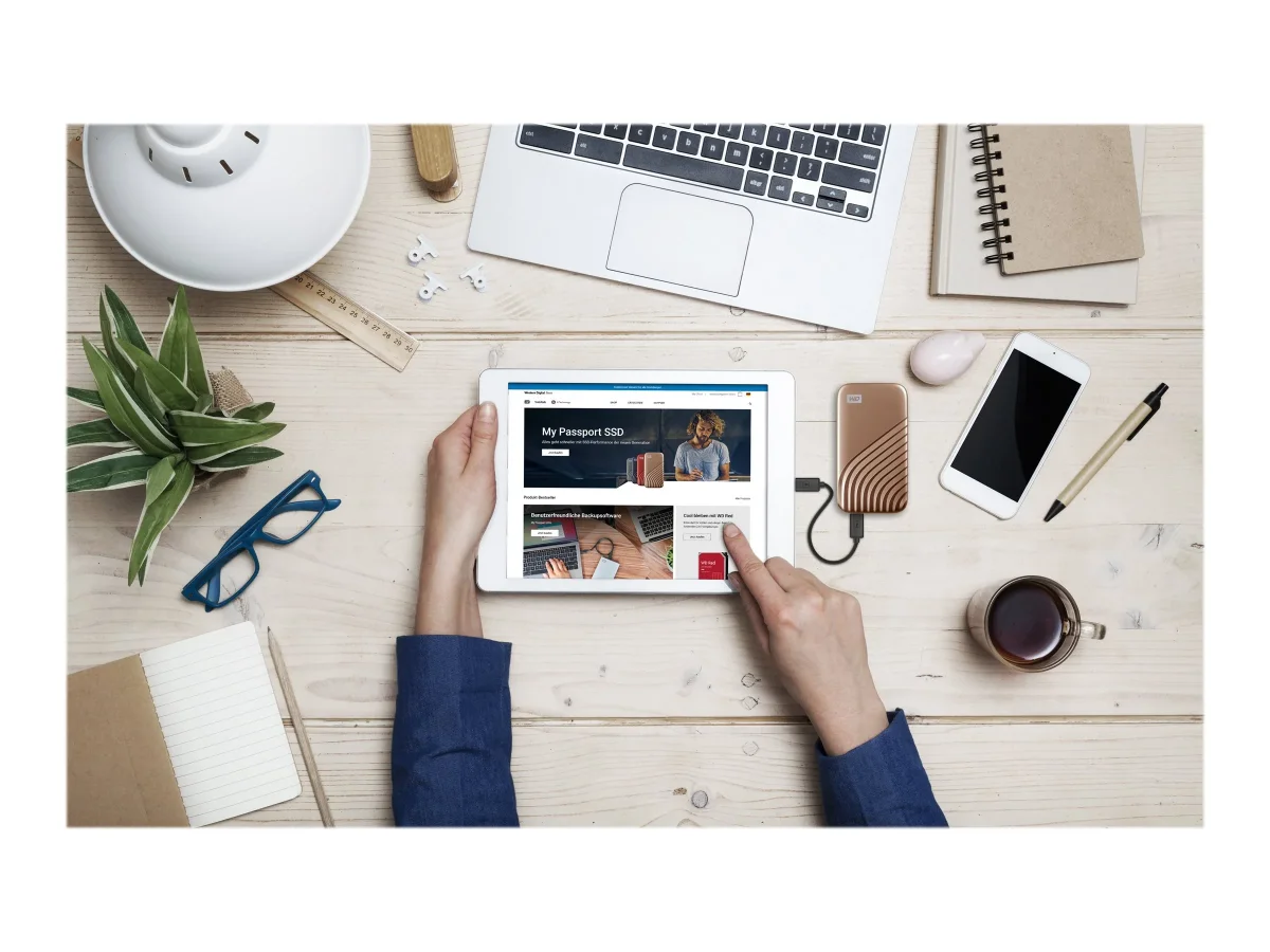 WD My Passport WDBAGF0020BGD - SSD - verschlüsselt - 2 TB - extern (tragbar) - USB 3.2 Gen 2 (USB-C Steckverbinder) - 256-Bit-AES - Gold