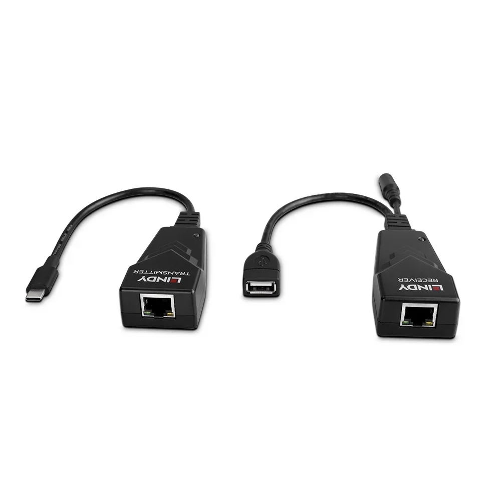 Der Lindy 100m USB 2.0 Typ C Cat.6 Extender überbrückt Distanzen bis 100m zwischen einem USB-Gerät und einem Computer mit USB-Typ-C-Anschluss. Er besteht aus einem Transmitter zum Anschluss an den Computer und einem Receiver zum Anschluss des USB-Typ-A-Gerätes. Die beiden Einheiten werden mit einem günstigen Cat.5e/6-Netzwerkkabel (nicht enthalten) verbunden. Wir empfehlen die Verwendung von Patchkabeln mit starren Adern, um die bestmögliche Performance und Kompatibilität zu erreichen.