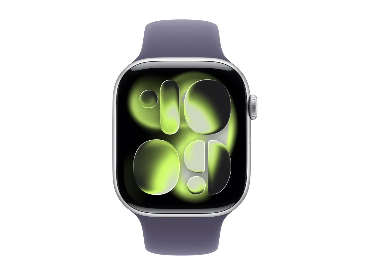 Apple Watch Series 11 (GPS + Cellular) - 46 mm - Aluminium, Silber - intelligente Uhr mit Sportband - Flouroelastomer - lila Nebel - Bandgröße: S/M - 64 GB - LTE, Wi-Fi 4, UWB, Bluetooth - 5G - 36.9 g