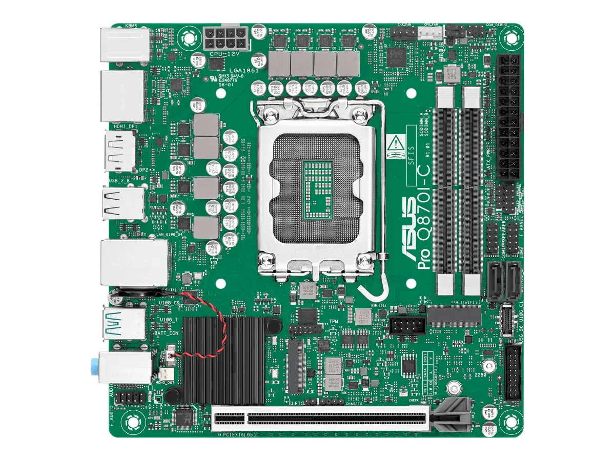 ASUS PRO Q870I-C-CSM - Motherboard - Mini-ITX - LGA1851 Sockel - Q870 Chipsatz - USB-C 3.2 Gen2, USB 3.2 Gen 1, USB 3.2 Gen 2 - Gigabit LAN - Onboard-Grafik (CPU erforderlich) - HD Audio (8-Kanal)