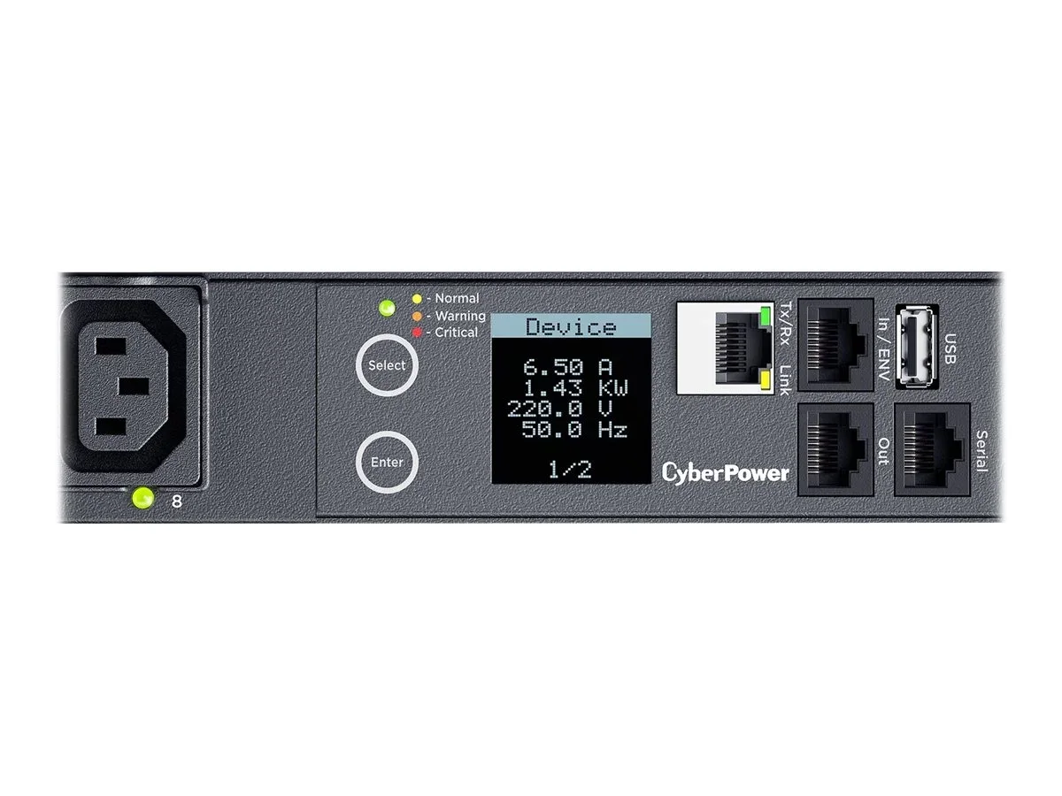 CyberPower Switched Series PDU41005 - Stromverteilungseinheit (Rack - einbaufähig) - Wechselstrom 100-240 V - 1-phasig - Ethernet, serial - Eingabe, Eingang IEC 60320 C20 - Ausgangsanschlüsse: 8 (power IEC 60320 C13) - 1U - 3.05 m Schnur - Schwarz