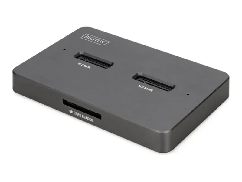 DIGITUS - SSD-Dockingstation mit SD Express Kartenlesegerät Schächte: 2 - M.2 (M.2 22110, M.2 2242, M.2 2260, M.2 2280) - M.2 NVMe Card / SATA - USB-C 3.2 (Gen 2)