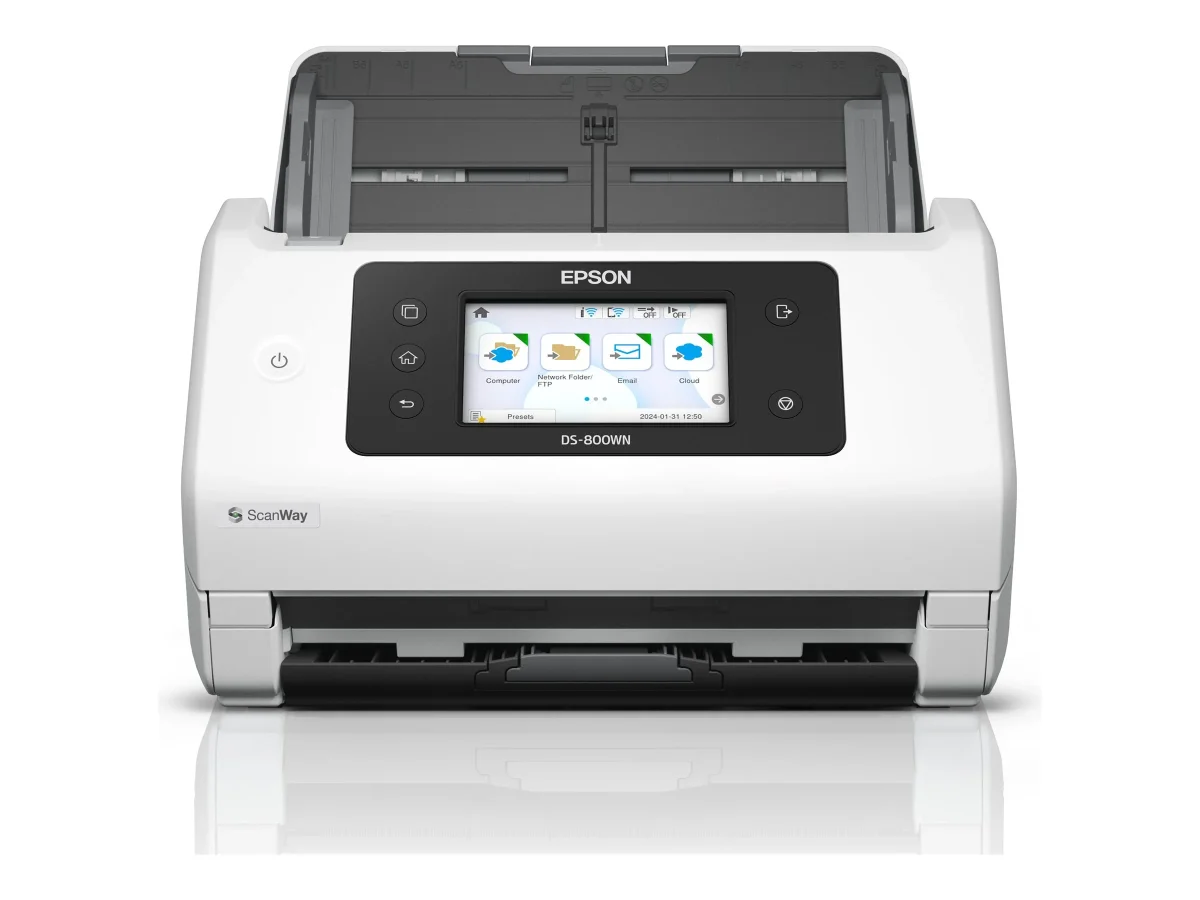 Epson WorkForce DS-800WN - Dokumentenscanner - Duplex - A4/Legal - 600 dpi x 600 dpi - bis zu 50 Seiten/Min. (einfarbig) / bis zu 50 Seiten/Min. (Farbe) - automatischer Dokumenteneinzug (100 Blätter) - bis zu 8000 Scanvorgänge/Tag - USB 3.2 Gen 1x1, Gigabit LAN, USB 2.0 (Host), Wi-Fi