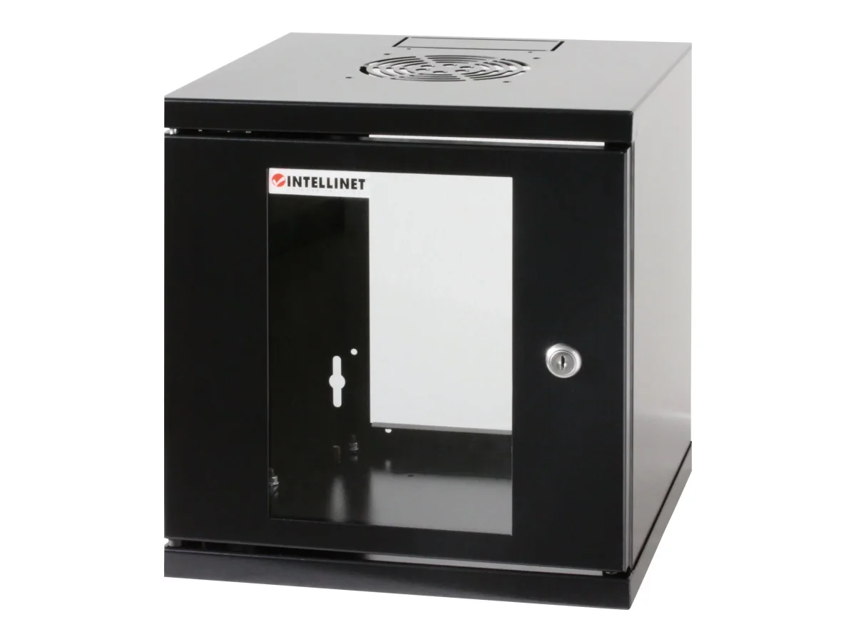 Intellinet Network Cabinet, Wall Mount (Standard), 15U, Usable Depth 500mm/Width 540mm, Black, Assembled, Max 60kg, Metal & Glass Door, Back Panel, Removeable Sides,Suitable also for use on desk or floor,19",Parts for wall install (eg screws/rawl plugs) not included - Gehäuse - geeignet für Wandmontage - Schwarz, RAL 9005 - 15U - 48.3 cm (19")