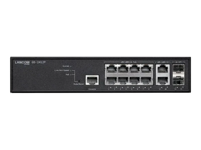 LANCOM GS-2412P - Switch - managed - 8 x 10/100/1000 (PoE+) + 2 x 1 Gigabit SFP + 2 x 10/100/1000 - an Rack montierbar - PoE+ (130 W)