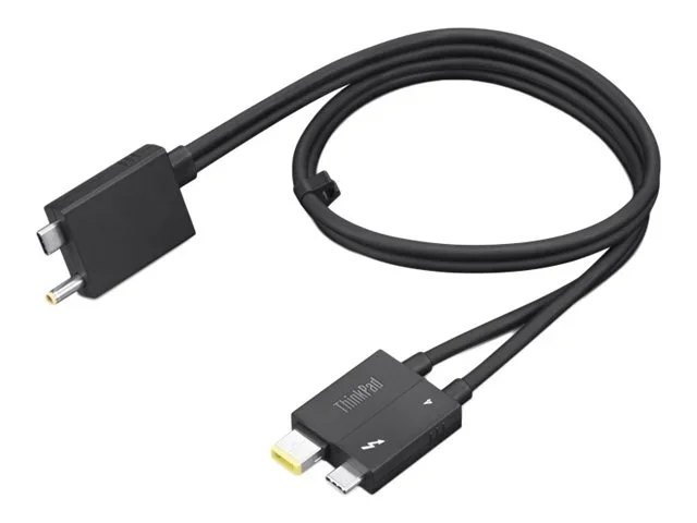 Das Lenovo Thunderbolt 4 Workstation Dock Split Cable ist ein geteiltes Dock-Kabel mit einer Länge von 70 cm, das für das ThinkPad Thunderbolt 4 Workstation Dock entwickelt wurde, indem es das Slim-Tip-Netzkabel und das Thunderbolt 4-Kabel kombiniert.