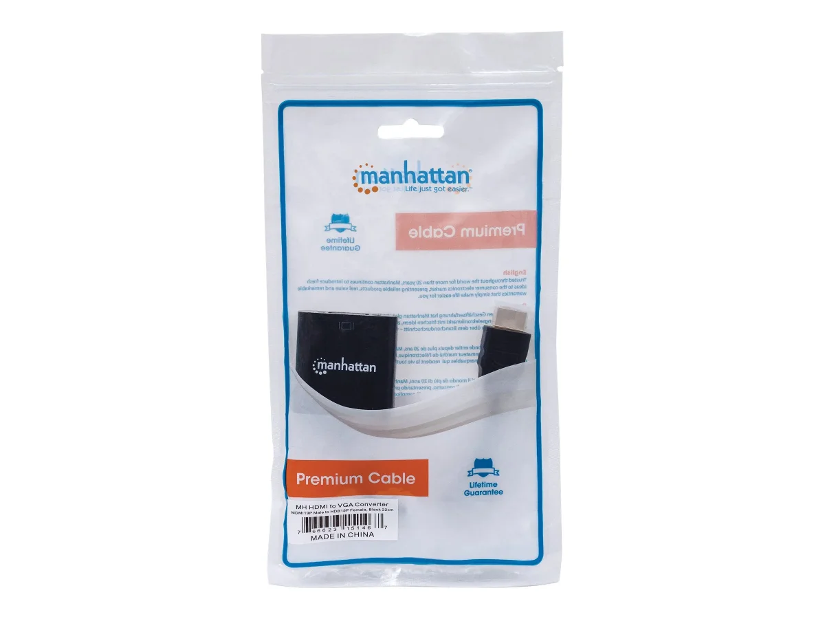 Der Manhattan HDMI auf VGA Konverter ermöglicht den Anschluss eines PCs oder Notebooks mit HDMI-Port an einen Bildschirm oder Beamer mit VGA-Port. So können Sie auch ältere Displays noch mit modernen HDMI-Geräten nutzen.
