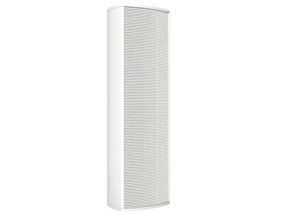 - Weißes Aluminiumgehäuse mit Frontschutzgitter