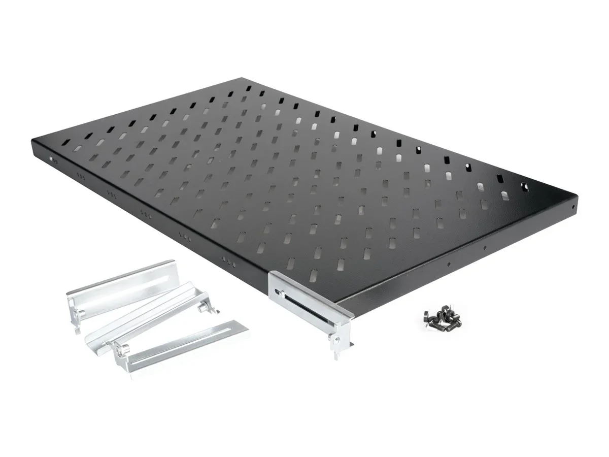 ROLINE 19 Zoll Fachboden 1 HE 770 T 50 kg schwarzDie fest installierbaren Fachböden können problemlos an den vier 19"-Profilschienen Ihres 19" Netzwerk- oder Serverschrankes angebracht werden. Sie bestehen aus stabilem, perforiertem Lochblech und haben eine Traglast von bis zu 50 kg, was sie zur idealen Ablagefläche für Komponenten macht, die nicht 19"-einbaufähig sind. Die Befestigungsschienen lassen sich bei Bedarf verstellen.