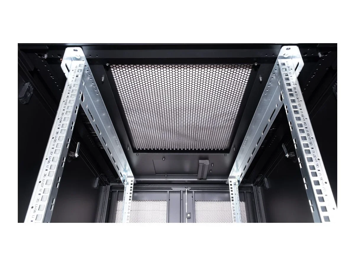 ROLINE 19 Zoll Serverschrank Pro 42 HE 800x1000 BxT schwarzDie Serverschränke der ROLINE Pro Serie wurden speziell für eine komfortable und flexible Netzwerkverkabelung entwickelt. Seitlich im Dach und Boden (ab 800 mm Schrankbreite) befinden sich Einlässe mit Bürsten, ein aufschiebbarer Einlass mit Moosgummidichtung sowie ein zusätzlicher Bürsteneinlass im Bodenchassis, die vielseitige Einsatzmöglichkeiten bieten. Perforierte Einflügel-Fronttüren und doppelflügelige Rücktüren, jeweils mit Schwenkgriff und Profil-Halbzylinder, sorgen für eine verbesserte Luftzirkulation. Das Dach verfügt über eine perforierte Abdeckung, die eine einfache Installation eines Lüftermoduls ermöglicht.Im Inneren des Schranks sind zwei Paar galvanisierte 19"-Profilschienen montiert, die mit in beide Richtungen ablesbaren Höheneinheiten ausgestattet und in der Tiefe verstellbar sind. Zusätzlich sind sie mit Tiefenstreben verbunden. Jeder Schrank besteht aus einer robusten Stahlkonstruktion mit einer Materialstärke von bis zu 2,0 mm. Die Schränke sind elektrostatisch pulverbeschichtet und in den Standardfarben Grau (RAL 7035) und Schwarz (RAL 9005) erhältlich. Modular abschließ- und abnehmbare Seitenwände (ab 42HE horizontal geteilt) und Türen verbessern die Zugänglichkeit. Der Türanschlag kann ebenfalls gewechselt werden. Die komplette Konstruktion ist zerlegbar, weshalb die Schränke bei Bedarf vollständige demontierbar wären.