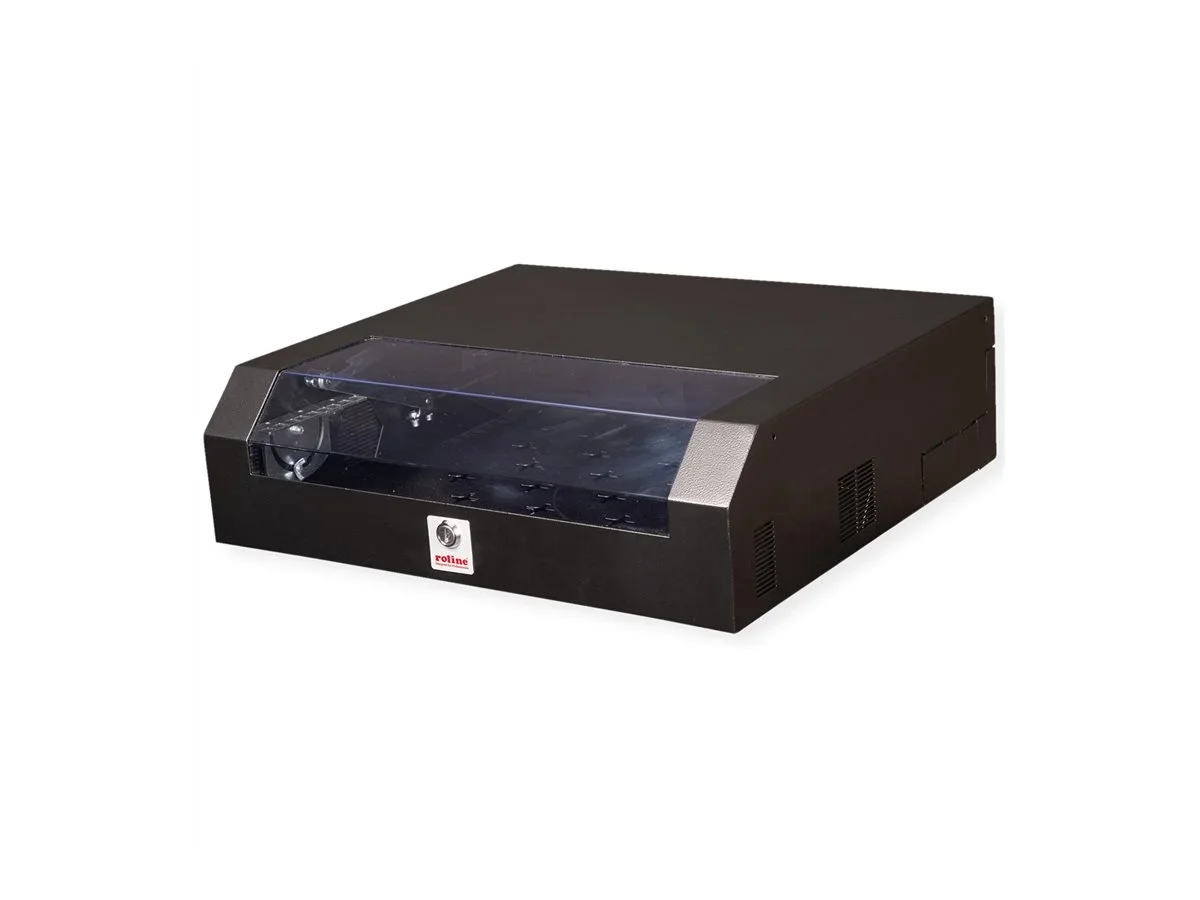 ROLINE 19 Zoll Wandgehäuse Basic 5 HE kurz schwarzDie Wandgehäuse der ROLINE Basic Serie sind perfekt zur Unterbringung von aktiven und passiven Komponenten geeignet. Sie heben sich durch eine einfache und vor allem zeitsparende Installation von vielen anderen Gehäusen ab. Dank ihres modernen Designs fügen sie sich harmonisch in jedes Büro oder zuhause ein. Das Gehäuse bietet zwei separate Montagemöglichkeiten: An der Vorderseite befindet sich eine rotierbare vertikale 3HE-Schiene, die alternativ auch horizontal oder schräg positioniert werden kann. An der Rückseite ist eine fest angebrachte horizontale 2HE-Schiene, die sich beispielsweise für passive Netzwerkkomponenten eignet. Die ausgestanzten Montagelöcher im gesamten unteren Gehäusebereich ermöglichen zudem die Installation von nicht 19" fähigen Komponenten wie Switche und Routern. Alternativ kann hierfür eine Montageplatte angebracht werden. Traglast: 30 kg Gehäuse kann bis zu 80° geöffnet werden 1-Punkt-Verriegelung Integrierter Türstopper-Mechanismus 19 Zoll Einbaumöglichkeiten: 3HE vertikal (rotierbar), 2HE horizontal (fix) Max. Einbautiefe: 265 mm Vorgestanzte Ausbrüche zur Kabelführung Lüftungsschlitze für passive Be- und Entlüftung Bodenblech mit ausgestanzten Montagelöcher IP Schutzklasse: IP20.