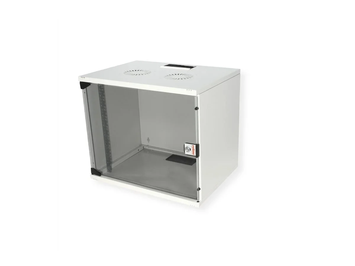 ROLINE 19 Zoll Wandgehäuse Basic 9 HE 540x400 BxT Bausatz grauDie 19" Wandschränke der ROLINE Basic Serie werden im unmontierten Zustand als Flatpack (Bausatz) geliefert. Verfügbar in vier verschiedenen Höheneinheiten und ausgestattet mit einer Vollglastür sowie Kabeleinführungen mit Bürsten an Dach und Boden, sind sie ideal für die Unterverteilung oder den Aufbau eines kleinen bis mittelgroßen Netzwerks geeignet. Im Inneren sind ein Paar galvanisierte 19" Profilschienen mit ablesbaren Höheneinheiten verbaut, die in der Tiefe verstellbar sind. Jeder Schrank besteht aus einer robusten Stahlkonstruktion aus bis zu 1,5 mm starkem Stahlblech und ist elektrostatisch pulverbeschichtet in den Standardfarben Grau (RAL 7035) und Schwarz (RAL 9005) erhältlich. Der Türanschlag kann bei Bedarf gewechselt werden. Die Montage ist dank der beiliegenden Montageanleitung einfach und schnell durchzuführen. Traglast: 60 kg Fronttür aus gehärtetem Glas, abschließbar 1-Punkt-Verriegelung an der Fronttür Dach und Boden mit Kabelzuführung Lüftungsschlitze für passive Be- und Entlüftung Dach mit Austanzung für Lüftermodule IP Schutzklasse: IP20.