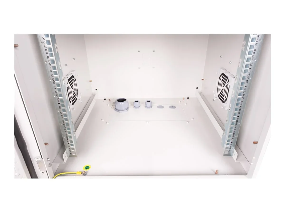 19 Zoll Wandgehäuse Pro 9 HE 600x600 BxT IP55 outdoor grauDie outdoor-Netzwerkschränke zur Wandmontage sind nach Schutzart IP55 entwickelt und speziell für den Einsatz in rauen Umgebungen, insbesondere im Außenbereich, ausgelegt. Die Wandgehäuse bieten ein 3-Punkt-Verriegelungssystem mit abschließbarem Schwenkgriff und isolierten PG-Kabelverschraubungen. Integrierte Lüftungsfiltergehäuse gewährleisten die Belüftung und bieten Schutz vor Wasser- und Staub gemäß IP54. Diese Schränke sind ideal für Außenbereiche, die Umwelteinflüssen wie Regen, Hagel, und Spritzwasser ausgesetzt sind. Das Dachchassis ist für die Installation eines Lüftermoduls mit einem gefilterten Bereich ausgestattet. Im Inneren befinden sich ein Paar galvanisierte 19"-Profilschienen, die in beide Richtungen ablesbar und in der Tiefe verstellbar sind. Jeder Schrank besteht aus einer robusten Stahlkonstruktion mit einer Materialstärke von bis zu 2,0 mm.Die Farbgebung erfolgt durch elektrostatische Pulverbeschichtung in der Standardfarbe Grau (RAL 7035). Die Wandmontage erfolgt mit den beigelegten Haltewinkeln. Optional können die Schränke mit einem Sockel als freistehende Lösung genutzt oder mithilfe eines Befestigungssets an Masten angebracht werden. Traglast: 100 kg Abschließbare Stahl-Fronttür mit Schwenkhebelgriff 3-Punkt-Verriegelung an der Fronttür Fronttür mit Erdung und zwei angeschweißten, stärkenden Balken Kabelzuführung im Boden Dach bietet mit einzubauenden Lüftermodulen Heißluftabfuhr aus dem Gehäuse, Austanzung für Lüftermodule Integrierte Lüftungsfiltergehäuse IP Schutzklasse: IP55.