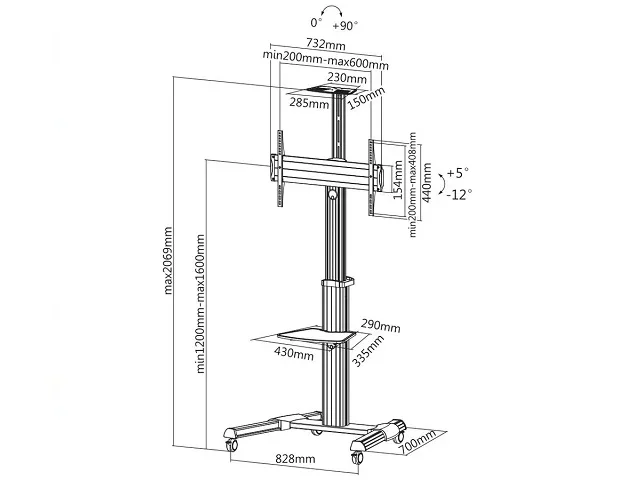 Der LCD-/TV-Rollständer ist ideal für einfache mobile Nutzung eines großen Monitors (PC oder TV), besonders zum Einsatz in Präsentationsräumen oder Klassenzimmern! Teleskopisch höhenverstellbarer TV-Wagen Dreh-Funktion von 0°-90° zum Umschalten zwischen Landschafts- und Porträt-Modus Optionale Webcam Halterung im Lieferumfang enthalten Höhenverstellbare TV-Halterung Frei neigbares Design zwischen +5° und -12° für den perfekten Sichtwinkel Schnellverschluss für schnelle und einfache Höhenausrichtung Schnellmontageregal sorgt für eine einfache Nachinstallation Kabelmanagement hält alles organisiert Stabile Unterlage mit Schwerlastrollen Unterstützt max. VESA: 600x400 Maximale Bildschirmgröße: 37"-70" Maximale Tragfähigkeit: 50kg.