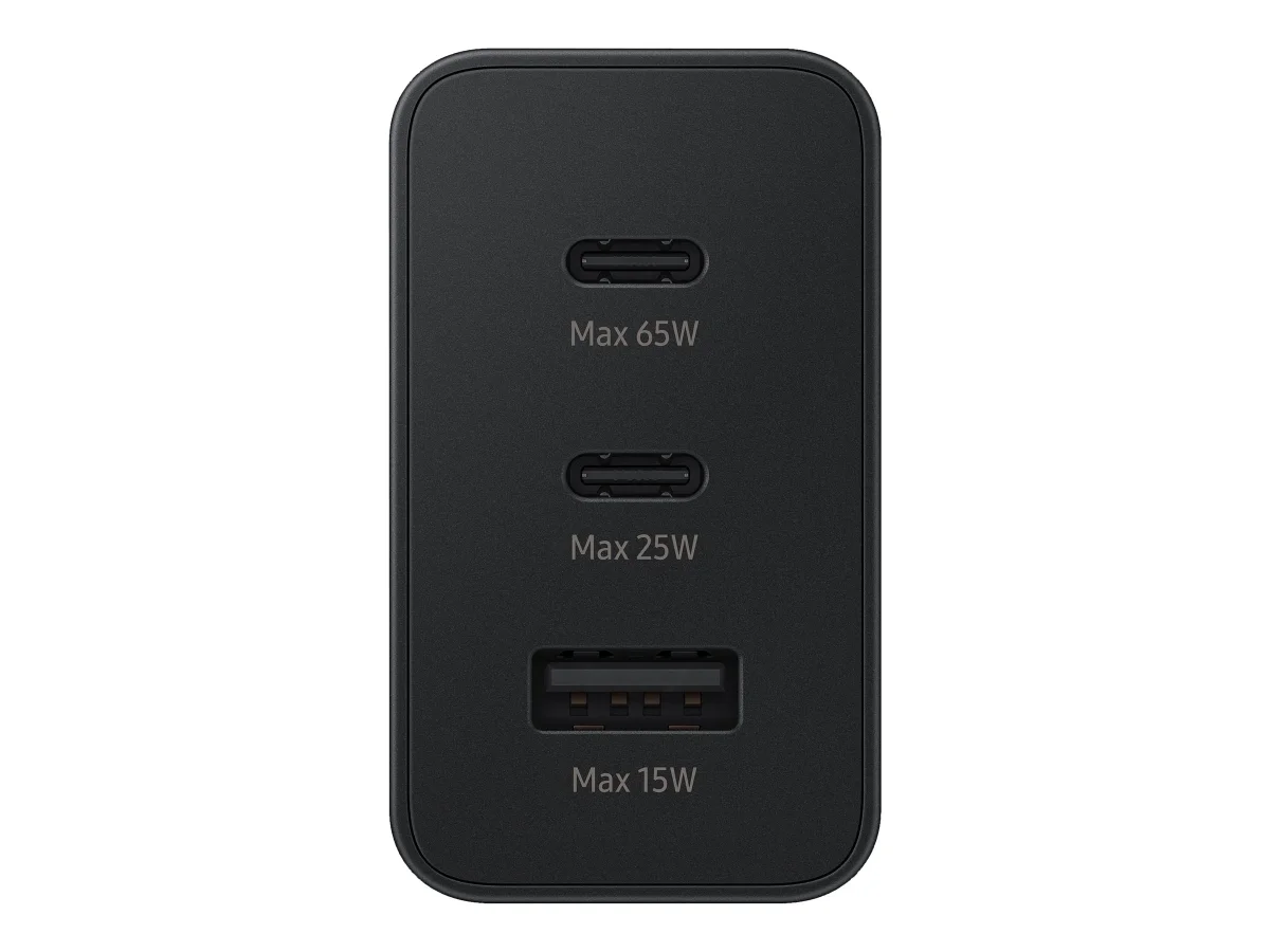 Samsung EP-T6530 - Netzteil - 65 Watt - 3 A - SFC 2.0, PD 3.0 - 3 Ausgabeanschlussstellen (2 x USB-C, USB) - Schwarz