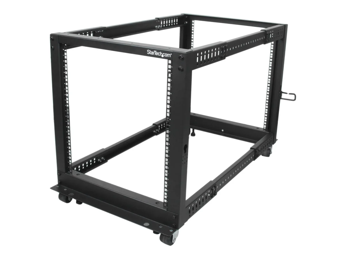 StarTech.com 12HE 4 Pfosten Open Frame Server Rack tiefenverstellbar mit Rollen / Nivellierfüße und Kabelverwaltung - Dell PowerEdge HP ProLiant ThinkServer (4POSTRACK12U) - Schrank offener Rahmen - Schwarz - 12U - für P/N: CABSCREWM5B, CABSCREWSM5, CABSCREWSM5B, CABSCREWSM62, CABSCREWSM6B, CABSCRWS1224