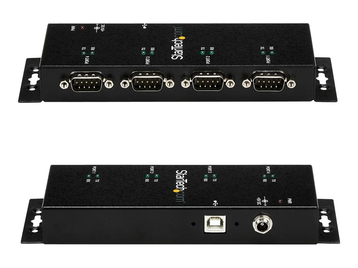 StarTech.com 4 Port USB auf Seriell RS232 Adapter Hub - Industriell DIN-Scheinen/ Wandmontagefähig - USB auf Seriell DB9 Konverter - Serieller Adapter - USB 2.0 - RS-232 x 4 - Schwarz
