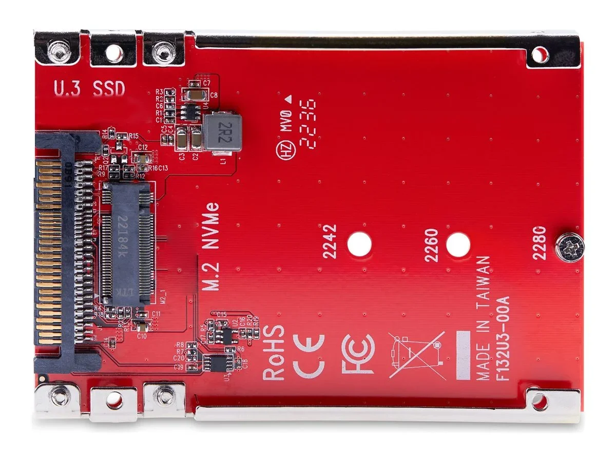 StarTech.com M.2 to U.3 Adapter, For M.2 NVMe SSDs, PCIe M.2 Drive to 2.5inch U.3 (SFF-TA-1001) Host Adapter/Converter, TAA Compliant - 2.5" Drive Form Factor (1M25-U3-M2-ADAPTER) - Schnittstellenadapter - M.2 - M.2 NVMe Card / PCIe 4.0 (NVMe) - U.3 - Rot - TAA-konform