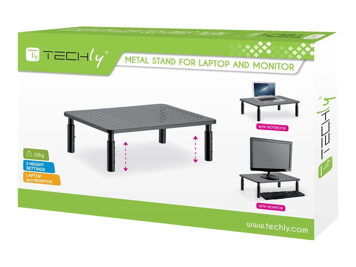 TECHly - Aufstellung - einstellbare Ergonomie - für LCD-Display/Notebook - Metall, gummierte Oberfläche - Schwarz - Schreibtisch