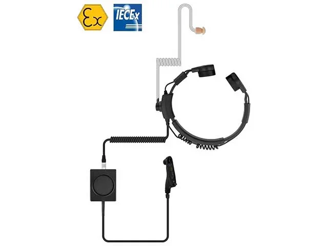 TITAN Kehlkopfmikrofon ATEX Typ:Comu Alex09 + Comu Laryngo m. Schallschl. +verstellb. Nackenbügel +gr. PTT +Stecker MOT DP4000Ex
